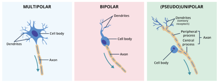 Fig. 2.2.7. Neurons may be classified based on their number of cellular processes.