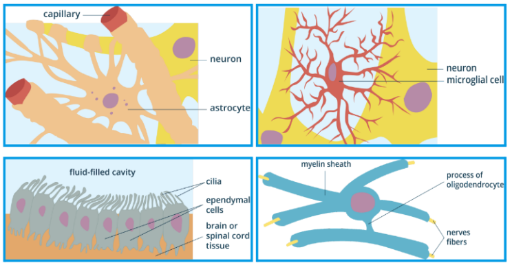 Fig. 2.2.8. Neuroglia or glial cells in the central nervous system