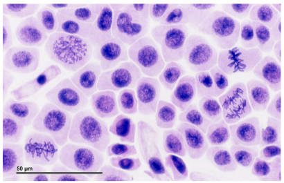 Eukaryotic cells undergoing mitosis
