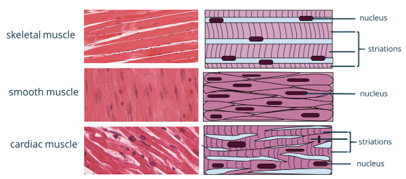 Fig. 2.2.5. The types of muscle tissues differ in their general structure but more or less perform the same function, i.e., to elicit movement.