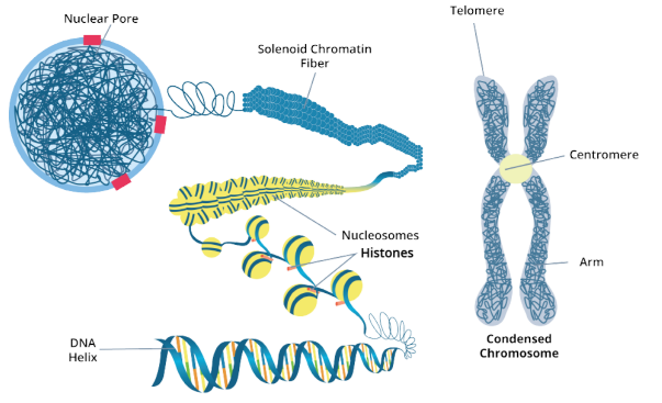 Fig. 2.1.4. In eukaryotes, the DNA is wrapped around histones to form nucleosomes.