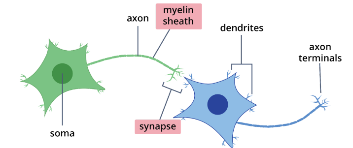 Fig. 2.2.6. Neuron, the basic unit of the nervous system, consists of structures that can conduct electrochemical signals as a form of information.