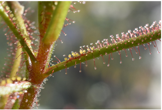 Fig. 2.4.12. Trichomes on insect-eating plants, such as Drosera hartmeyerorum or sundew, act as traps to insects that are trying to feed on them. Aside from protecting them from possible consumption, these glandular trichomes also aid in the digestion of captured insects.