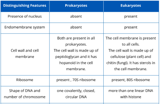 Prokaryotic and eukaryotic cells vary in different ways. Table 2.1.1. summarizes the distinguishing features of both prokaryotes and eukaryotes.
