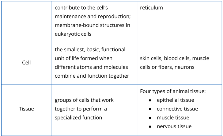 Table 2.2.1. Different levels of biological organization