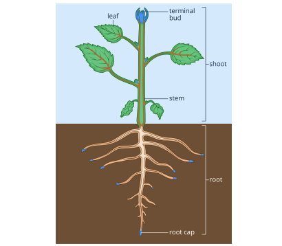Fig. 2.3.1 The blue parts represent the location of the apical meristem, while the red ones represent the location of lateral meristems.