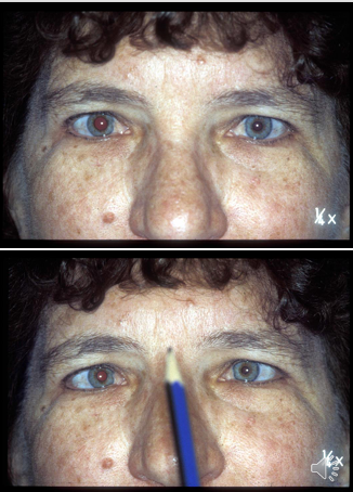 May see sectorial reaction to light or vermiform (wormlike) movements of segments of the sphincter under slit lamp.