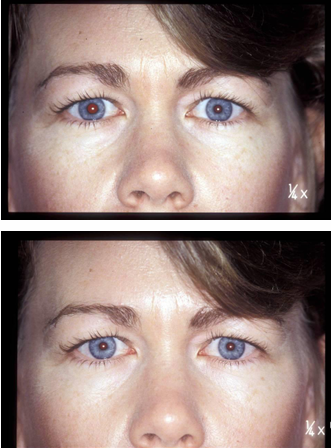 Look for evidence of: ptosis, motility defects, strabismus, heterophoria, head or eye injury.