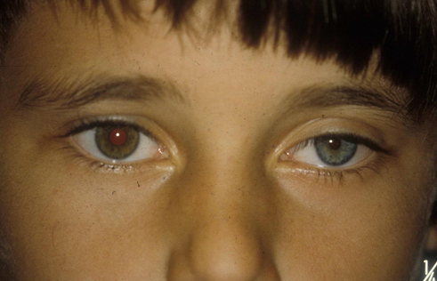Heterochromia is present only if congenital or acquired in early infancy (the affected eye is lighter).