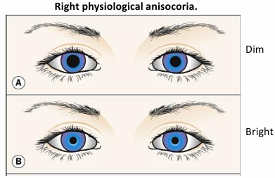 Parasympathetic pupillomotor defects: Anisocoria is greater in the light than in the dark.