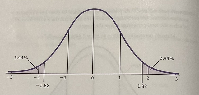Total extreme heights: 3.44% (below) + 3.44% (above) = 6.88%
