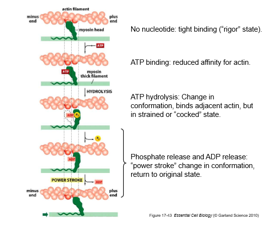Myosin motors | ATP | Binding, release, power stroke | Muscle contraction, cell migration |