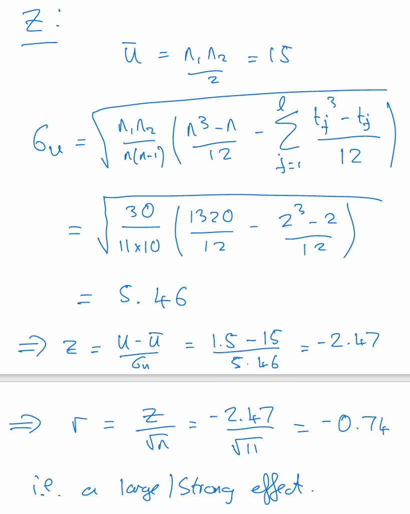 then U1=R1-(n1(n1+1))/2 = 16.5 - (5×6)/2 = 1.5