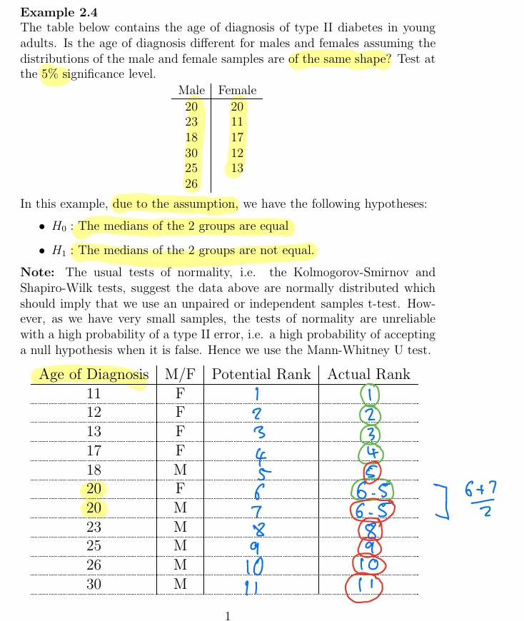 conclusion: the evidence suggests that the median age diagnosis of type II diabetes is different between male and female groups