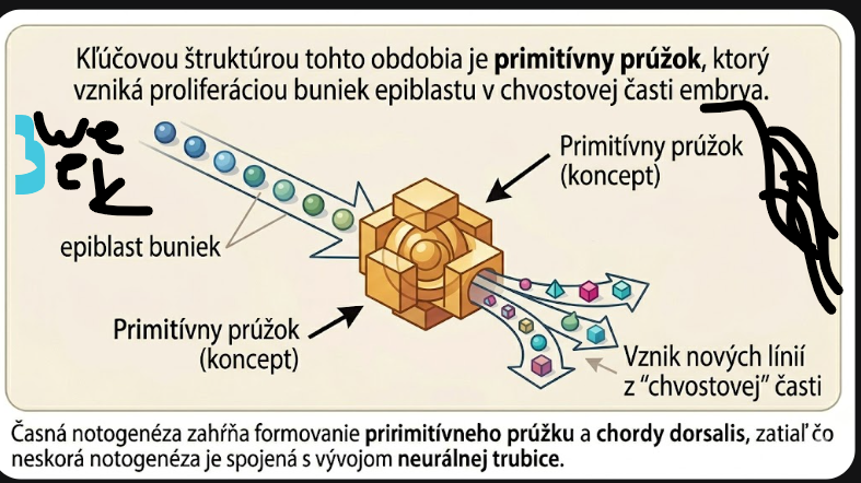 Kľúčovou štruktúrou tohto obdobia je primitívny prúžok, ktorý vzniká proliferáciou buniek epiblastu v chvostovej časti embrya.