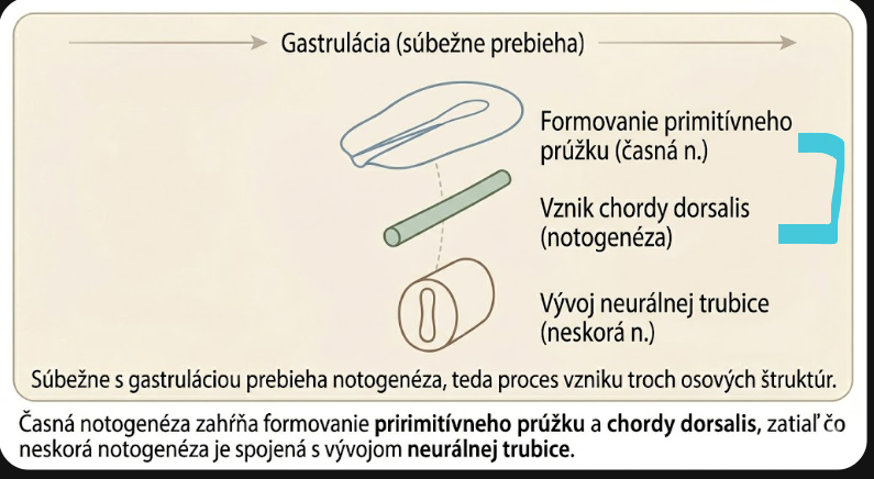 Súbežne s gastruláciou prebieha notogenéza, teda proces vzniku troch osových štruktúr.