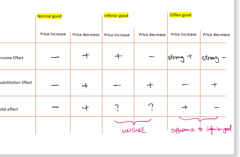 Types of Goods and price effects