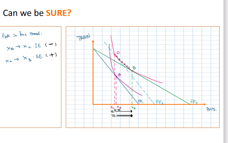income effect.This is is represented by moving from point M to point X on FF3 on the diagram, as the budget becomes smaller