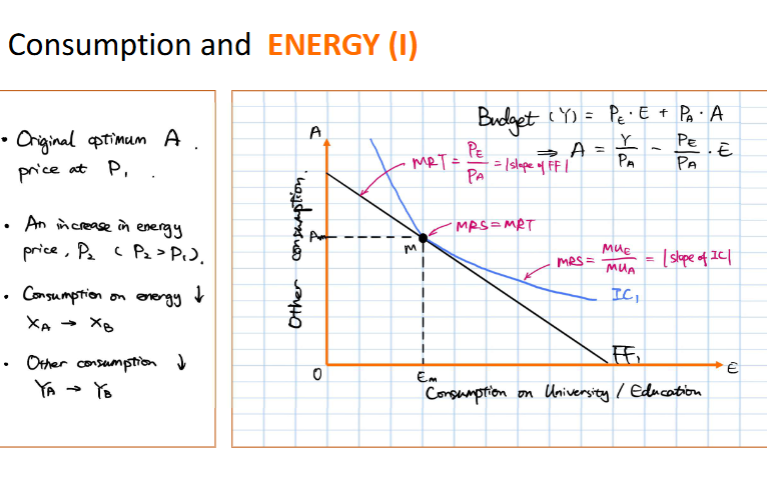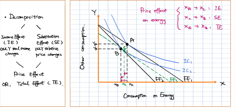 substitution effect.Shown by the movement from point X to point N on the diagram, where the FF is steeper (energy relatively more expensive than other goods)