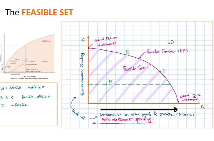The feasible frontier is downward sloping due to opportunity cost