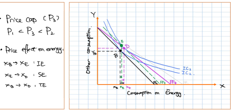 When there’s a price cap on energy, real income rises, so the FF shifts outwards to FF5 (income effect)