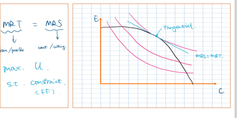optimal choice lies at MRS=MRT (assuming the aim is to maximise utility)