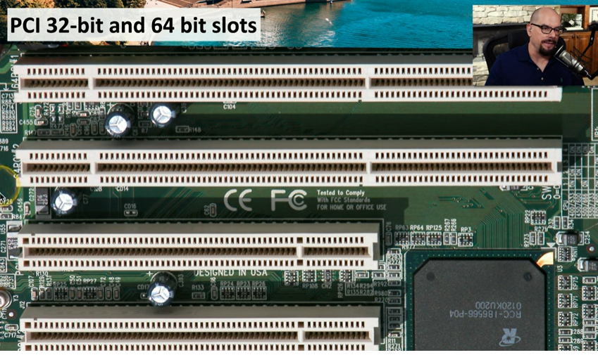 64-bit PCI slots are larger and can transfer twice the data of 32-bit slots.