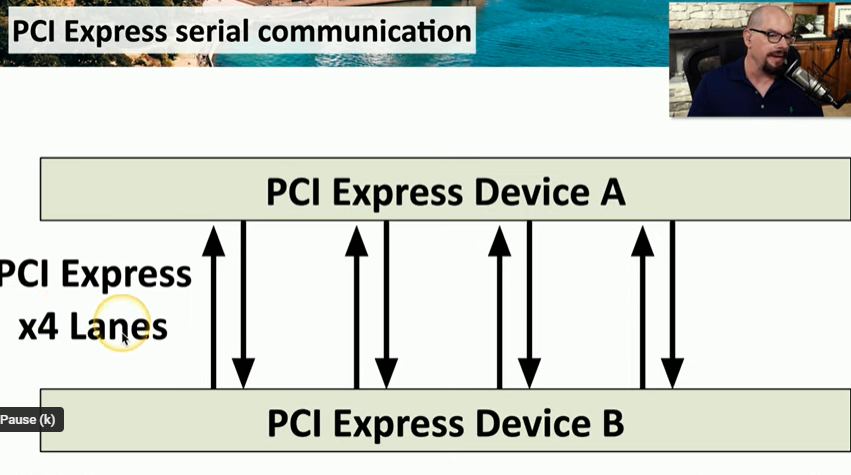 Communication Paths: Each PCIe lane has a bidirectional path for data.