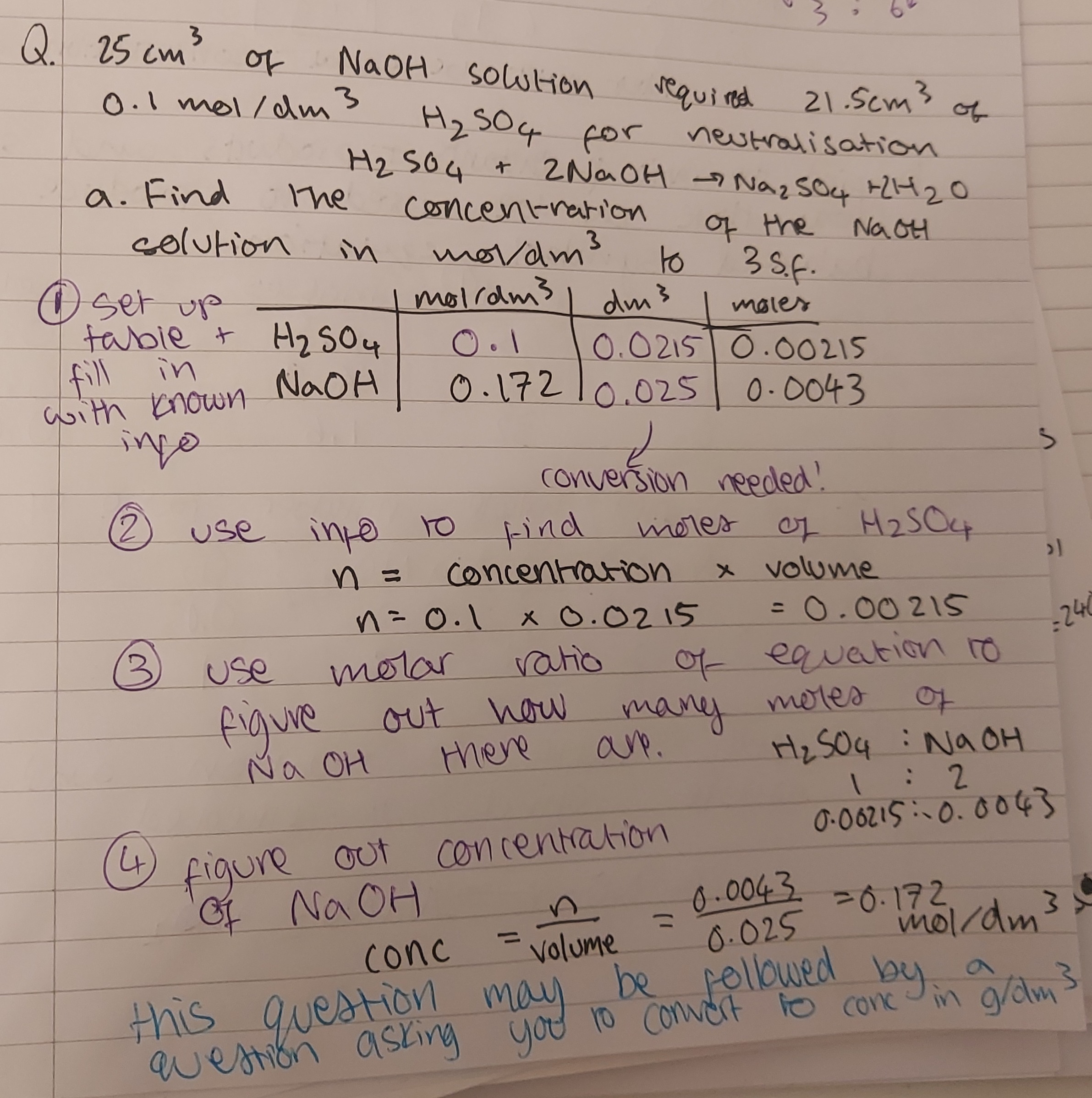 given volume is in dm3 → substitute into equation to find moles