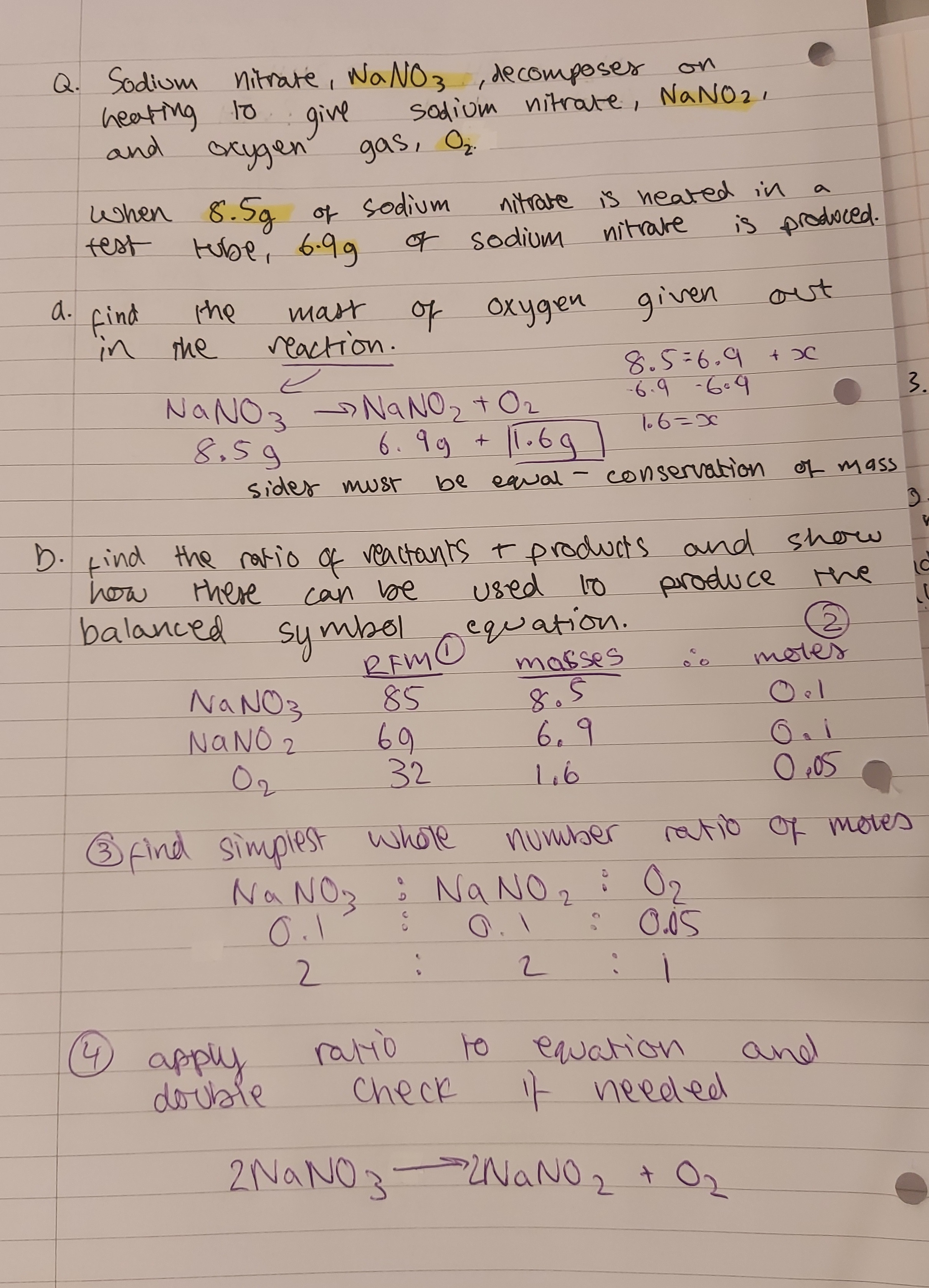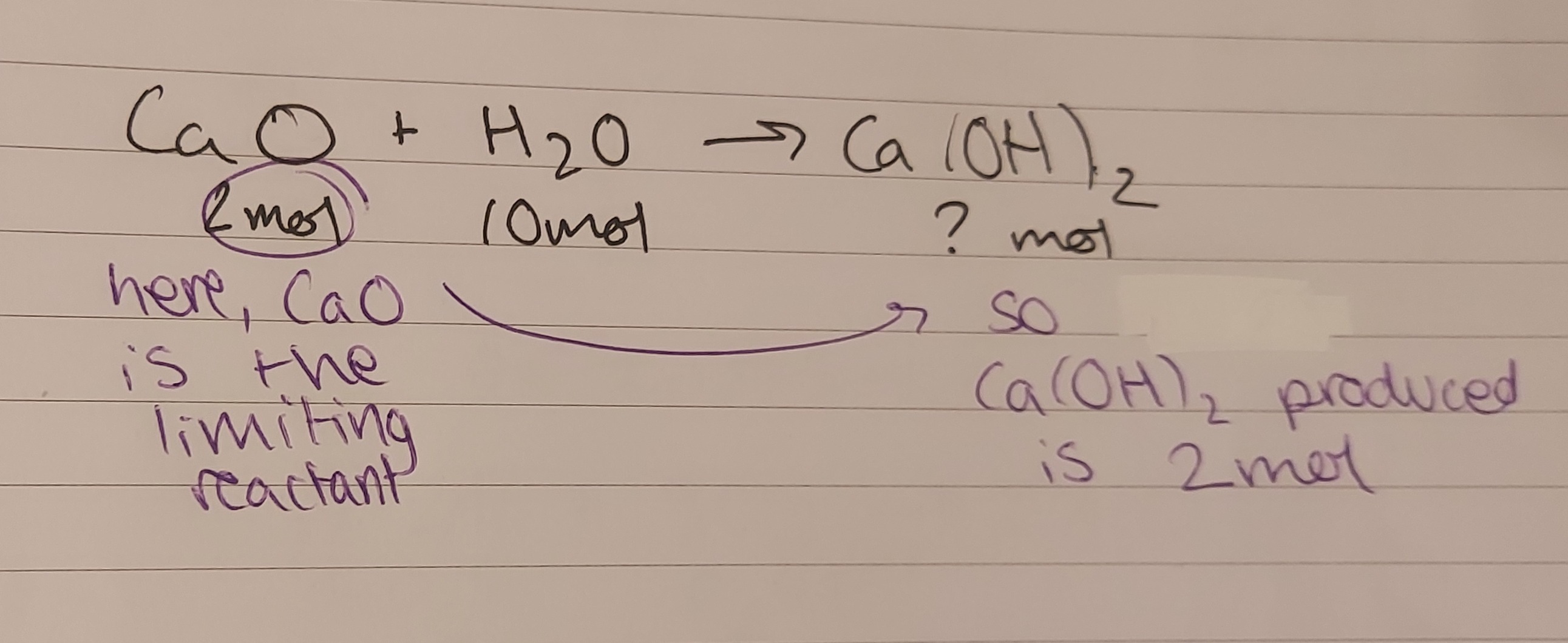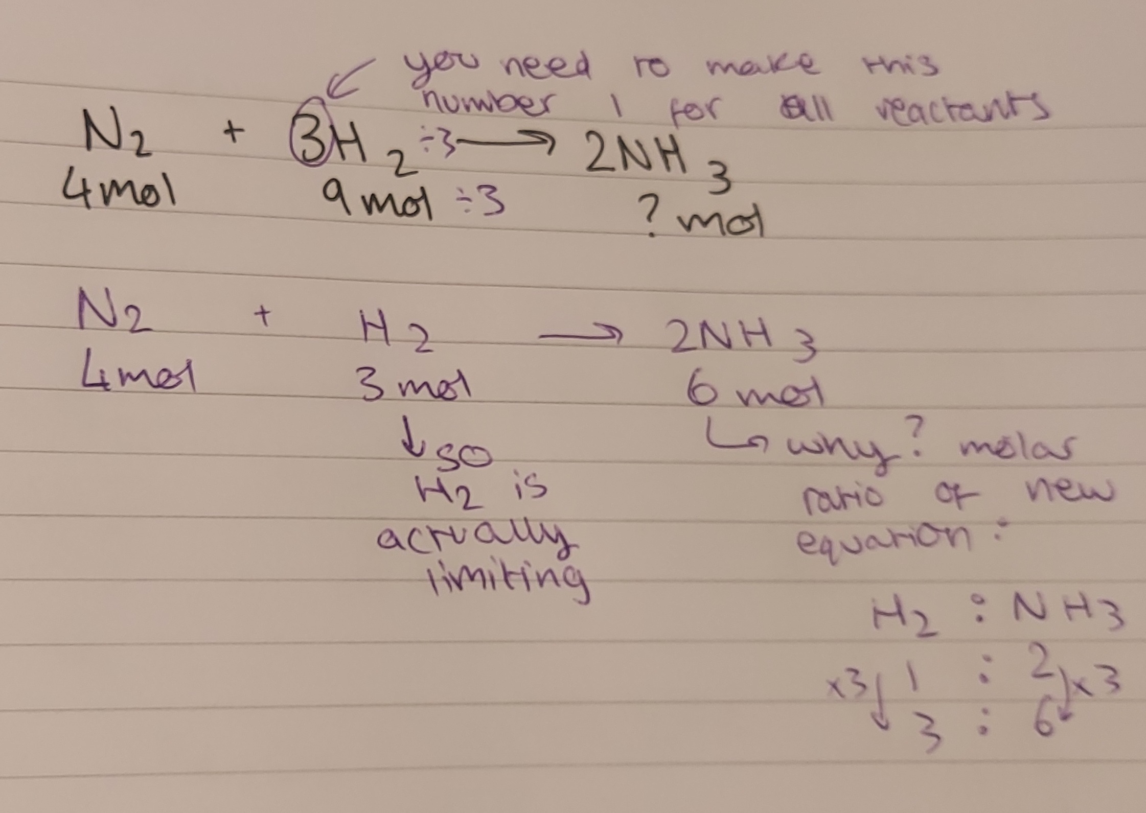 * why? conservation of mass - you’ll create x amount of products from x amount of reactants, even if it doesn’t always seem that way - e.g. a product could be a gas which is hard to weigh unless you’re making a point to collect it.