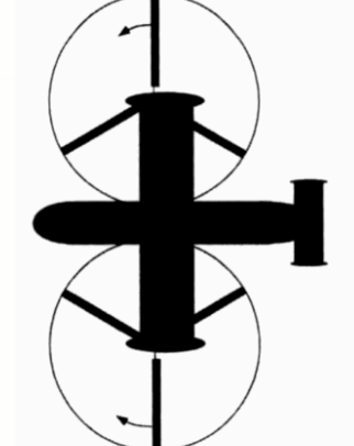 The arrangement allows the helicopter to function without the need for a tail rotor. This configuration is sometimes referred to as a synchropter.