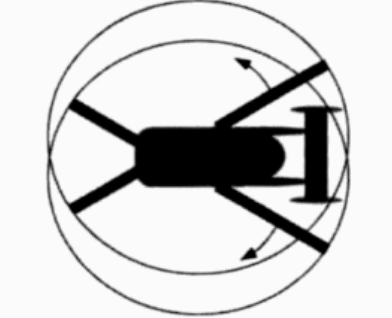 Right action: Pushing the right pedal increases tail rotor thrust and hence the helicopter turns to the right