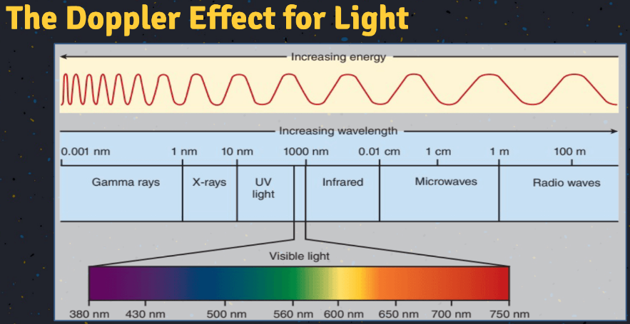 Red Shift - Has a much lower frequency than blue shift.