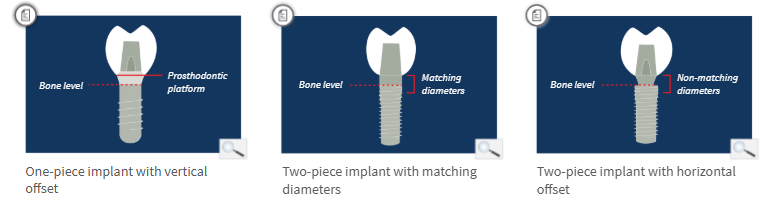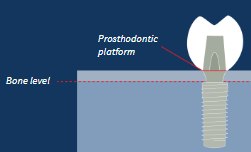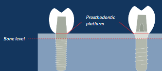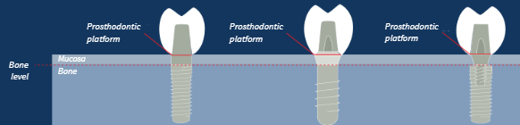 One-piece implants: typically 2-3mm above the bone crest - distance is called vertical offset