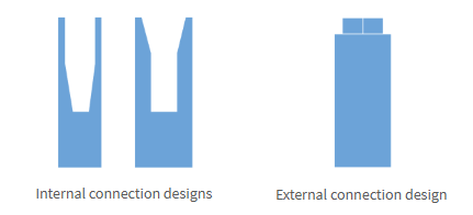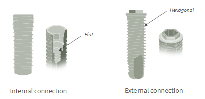 Examples can be seen with flat sides in the tapered internal connection and with a hexagonal profile in the external connection.