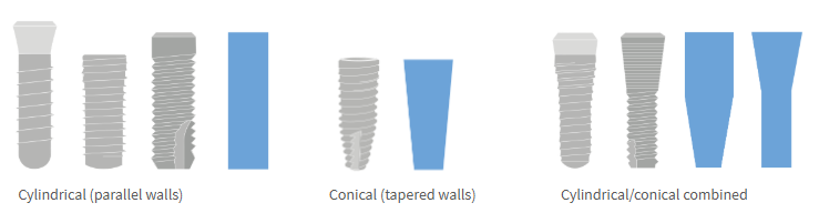 The amount, quality, and morphology of available bone as well as the need for higher initial stability influence the selection of implant body shape.