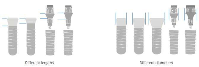 Both one-piece and two-piece implants offer variations in length and diameter but the two-piece designs are likely to offer greater flexibility of choice.