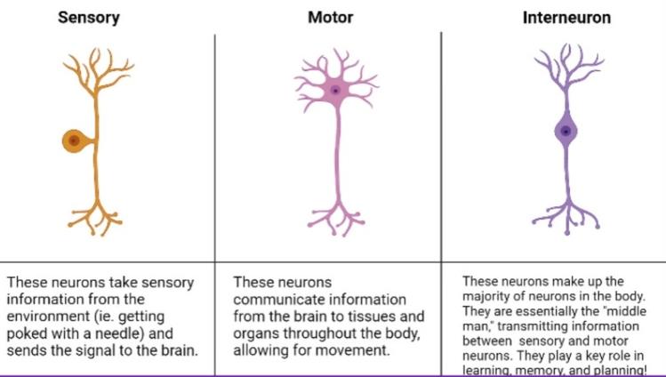Axons pass impulses to the dendrites of other neurons or the cell body of muscle cells.