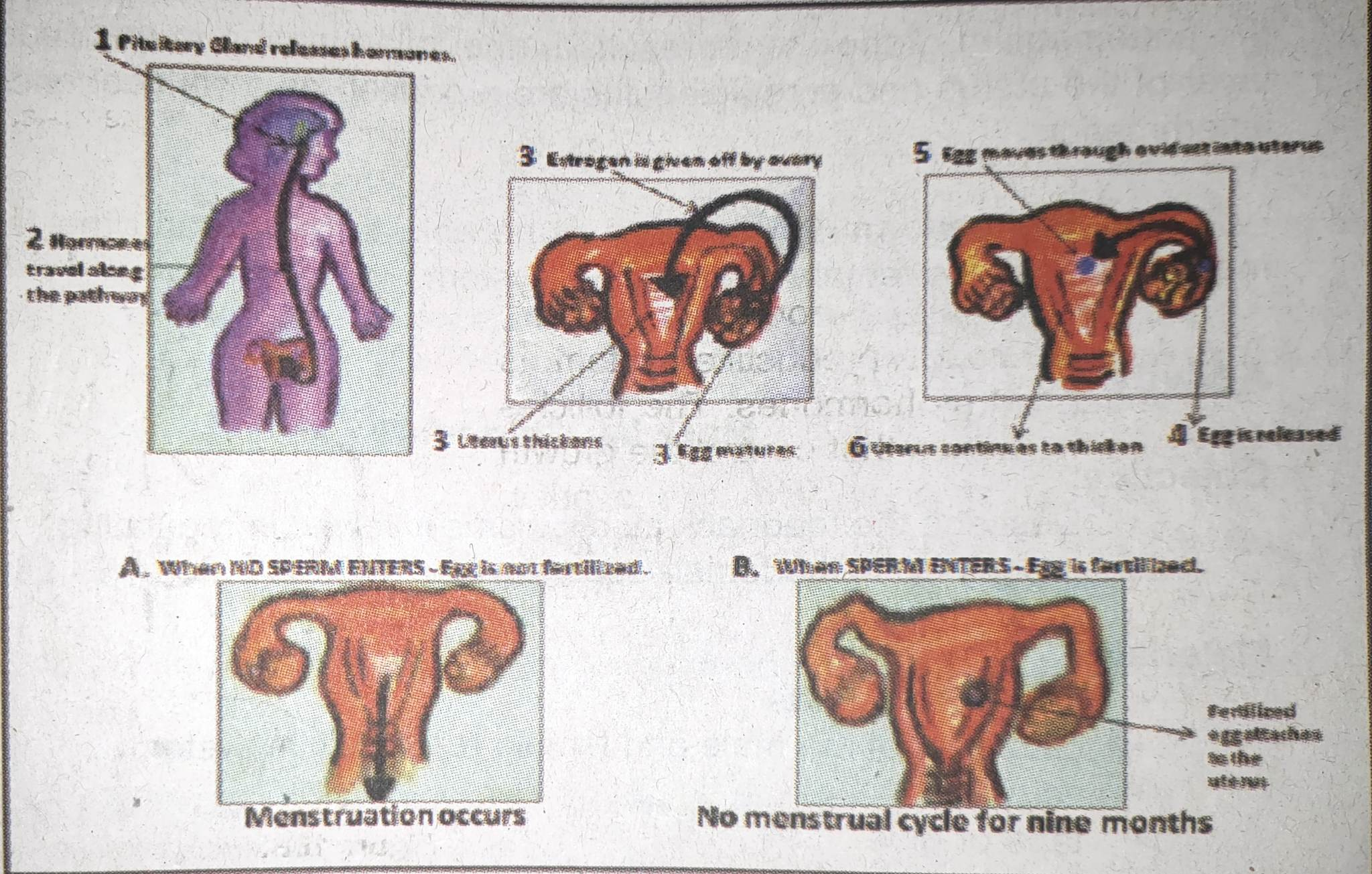 The monthly cycle continues for about 40 years. Refer to Figure 11 for a clearer explanation of the different events that take place in the cycle. Just follow numbers 1-10 in proper order.