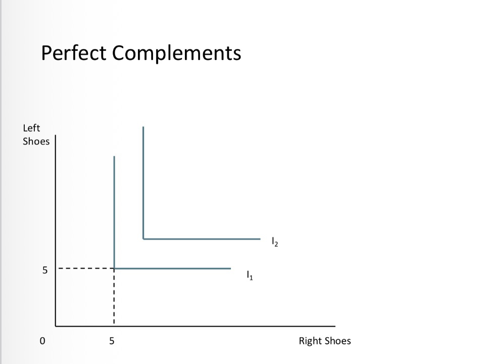 L-shaped indifference curves: Utility only increases when both goods increase together.