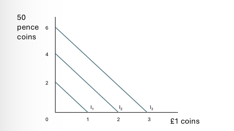 Straight-line indifference curves: Indifference curves are linear with a constant slope.