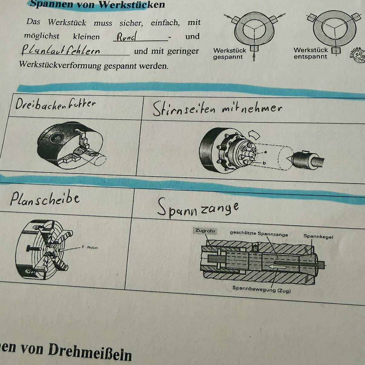 Spannen von werkstücken: