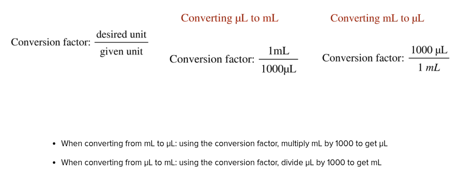 Micropipettors are designed to pipet liquids between 0.5 and 5000 µl. Using the equivalency equation, this is 0.0005–5 mL.
