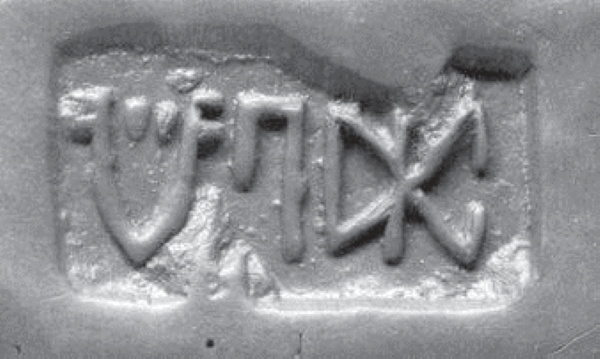 Indus script as shown on a stamp seal from the third millennium BCE. By Metropolitan Museum of Art, public domain.