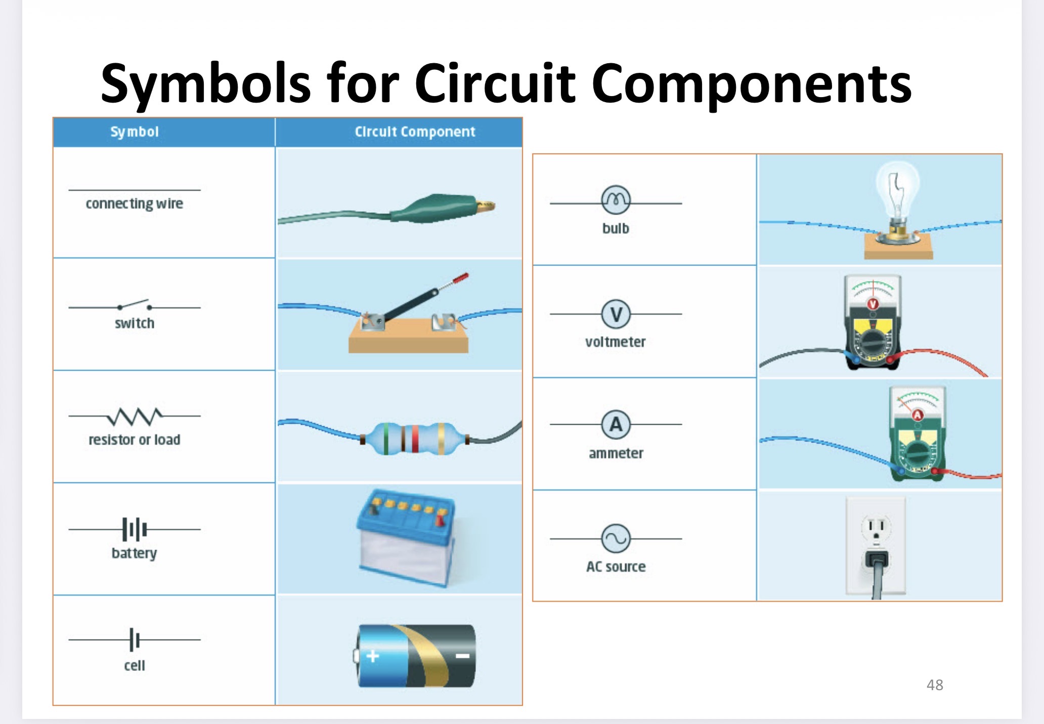 The source of electrical energy in a circuit is often a cell or a battery.