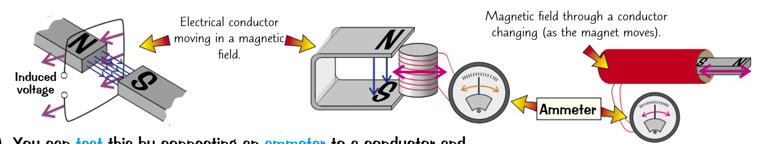 Testing Induced Voltage: You can use an ammeter to measure the induced voltage when moving a conductor through a magnetic field. The direction of current will reverse if the direction of movement changes.