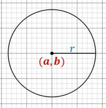 The equation of a circle : (x−a)2 + (y−b)2 = r2