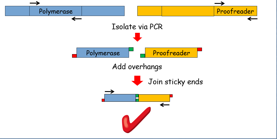 Example: Fusing the sequence encoding Taq polymerase's polymerase activity with the proofreading sequence of Vent™ polymerase.