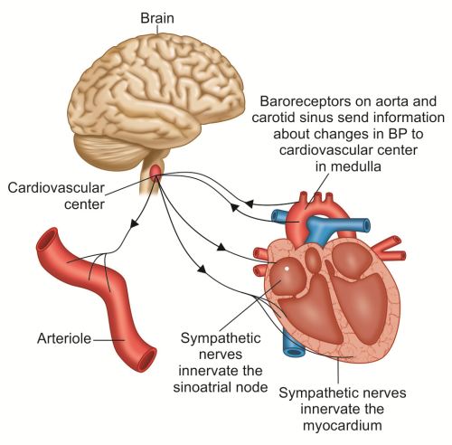 The cardiac centre in the brain sends signals to the SA node to initiate the impulses slower or faster.