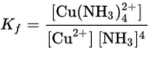 - For the reaction Cu (aq) + 4NH3 (aq) ⇄ Cu(NH3)4 (aq)